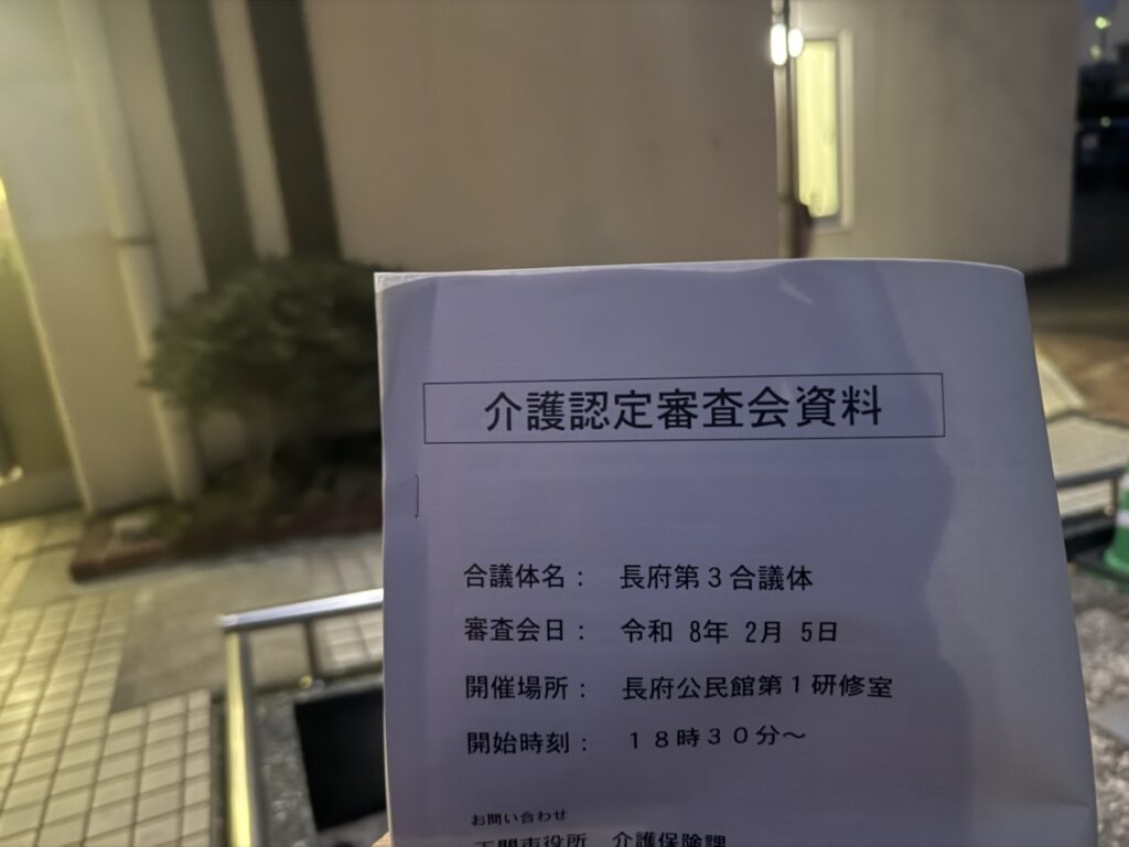 こんにちは。今日は2週間に1回行われている介護保険認定審査会に参加するため長府公民館へ。